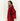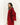 Red Long-Sleeve Dress With Textured Floral Embellishments Cascading Over One Shoulder