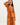 Burnt orange Florence Travel Wear Set featuring a single lapel top with a cord tie-up and elegant sleeve slits, offering versatile style and comfort for travel.